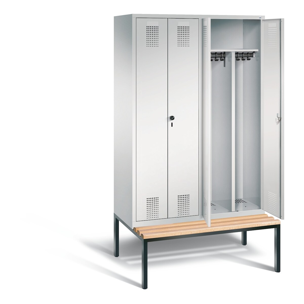 C+P Z-Spind Classic PLUS, Buche untergebaute Sitzbank 2 Abteile, HxBxT 212x40x82cm, Sicherheitsdrehriegel, Hellgrau/Lichtblau von PROREGAL