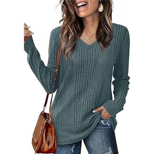 Per donna Tunica Top eleganti Tinta unica Elegante Giornaliero Manica lunga A V Verde militare Primavera Autunno Inverno