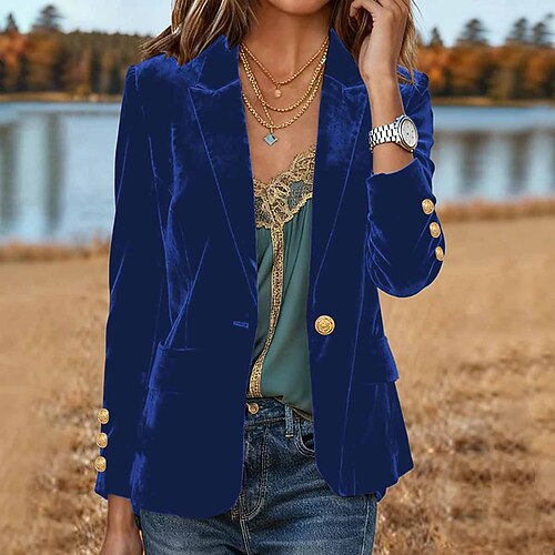 Per donna Blazer Blazer di velluto Caldo Confortevole Bottoni Casual Tinta unica Vacanza Streetwear Casuale Abbigliamento quotidiano Regolare Bavero classico Vestibilità regolare Manica Lunga