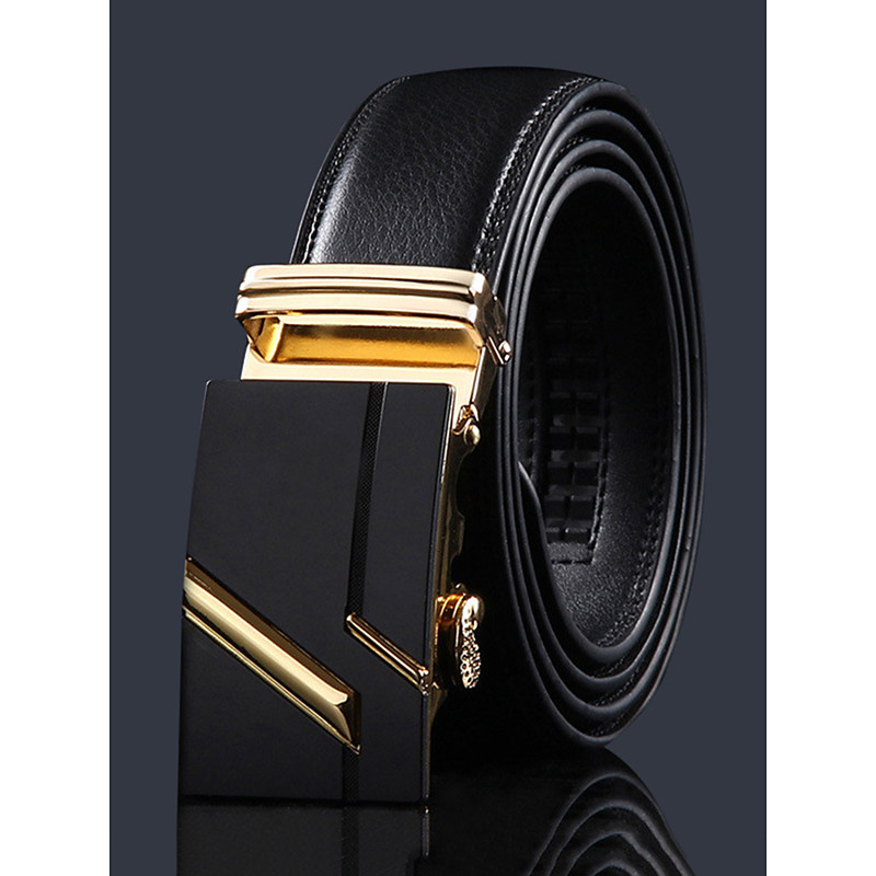 Men's Adjustable Black Leather Belt with Elegant Metal Buckle - Genuine Leather, Customizable Length, Perfect for Business Casual Wedding Occasions