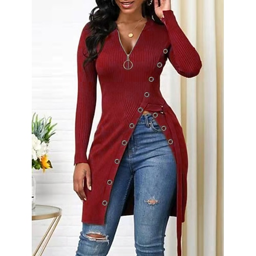 Per donna Maglietta Tinta unica Moda Elegante Classico Manica Lunga Scollo a V Top Regolari Quotidiano Uscire Weekend Bottoni Blu Nero Bianco Rosa Vino Primavera Autunno