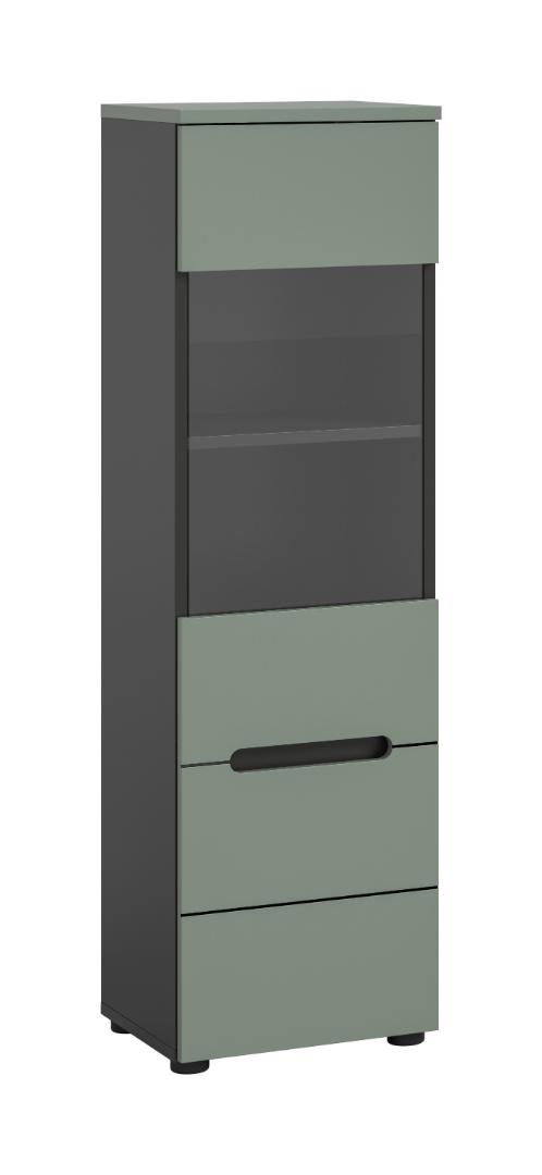 Canu Vitrinenschrank 1 Glastür staubgrün, dunkelgrau.