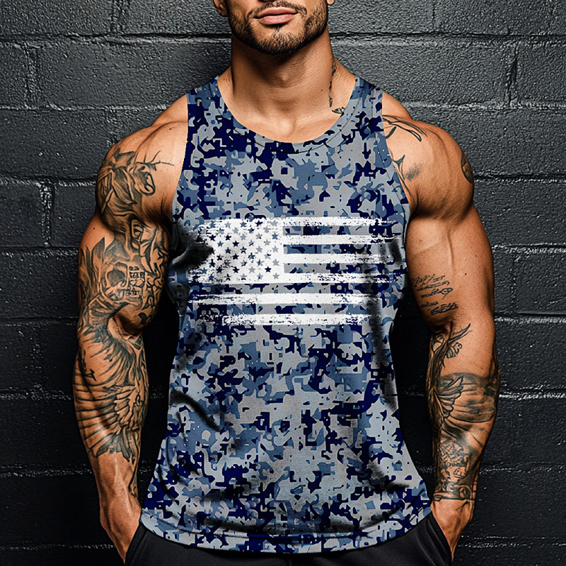Veterans Day Men's Patriot Patriotic Veteran Camo Camouflage T Shirt Vest Top Sleeveless T shirt 3D Print Crew Neck Shirt Vacation Casual Hawaiian Holiday Red Navy Blue Green Summer Spring Clothing