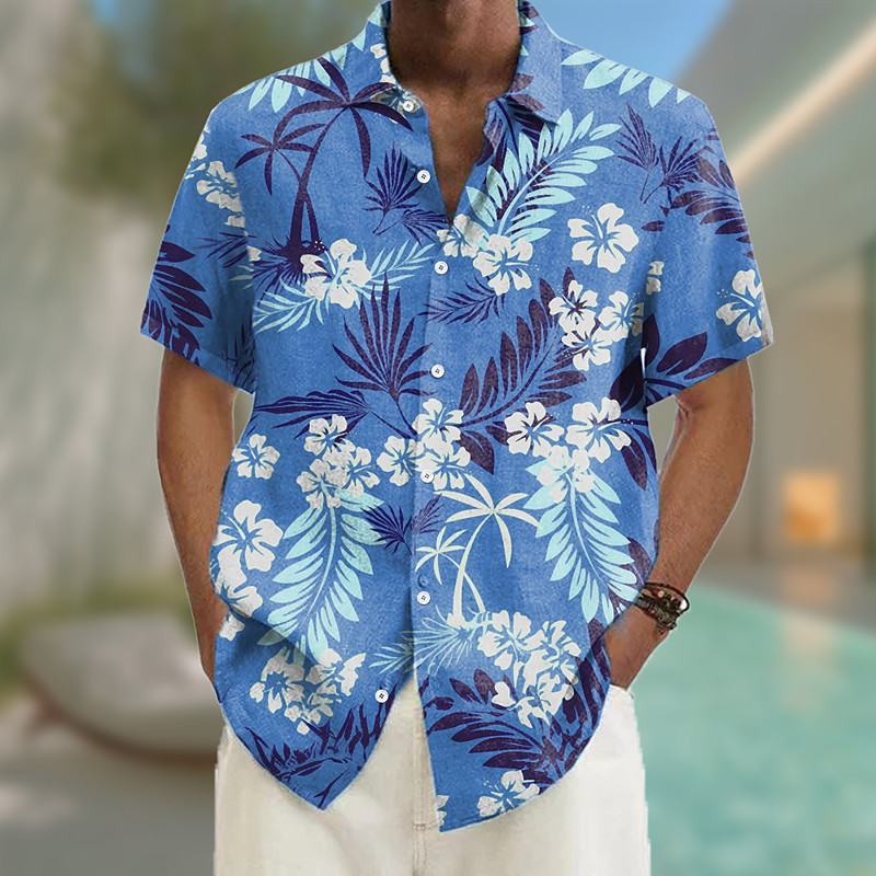 Men's Floral Print Tropical Flowers Summer Hawaiian Shirt Button Up Shirt Aloha Shirt Short Sleeve Hawaiian Vacation Beach Wear Summer Spring Turndown 3D Print Collared Shirts Red Blue Sky Blue Green