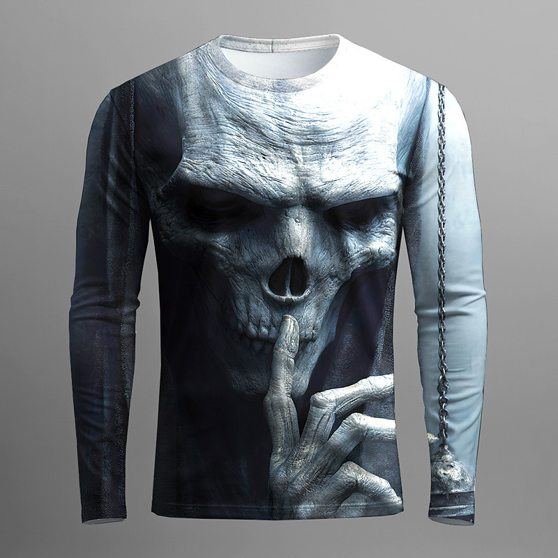 Halloween Men's Skull Optical Illusion 3D T Shirt Long Sleeve T shirt 3D Print Crew Neck Shirt Fashion Exaggerated Street Casual Daily Light Blue Blue Green Summer Spring Fall Clothing Apparel S M L