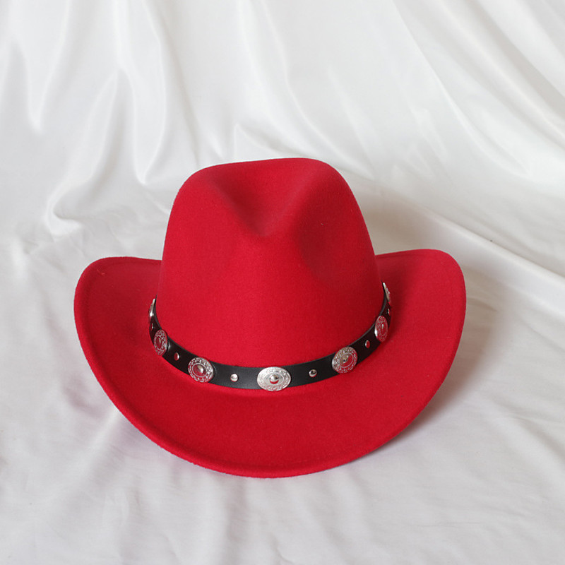 Solid Color Unisex Punk Western Cowboy Hat With Knitted Felt