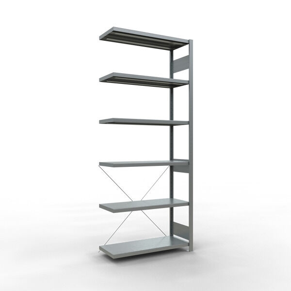 SCHULTE Lagertechnik Anbauregal, Fachbodenregal Stecksystem MULTIplus250, 2500 x 1000 x 400 mm (HxBxT), 6 Fachböden, Kreuzstrebe, verzinkt