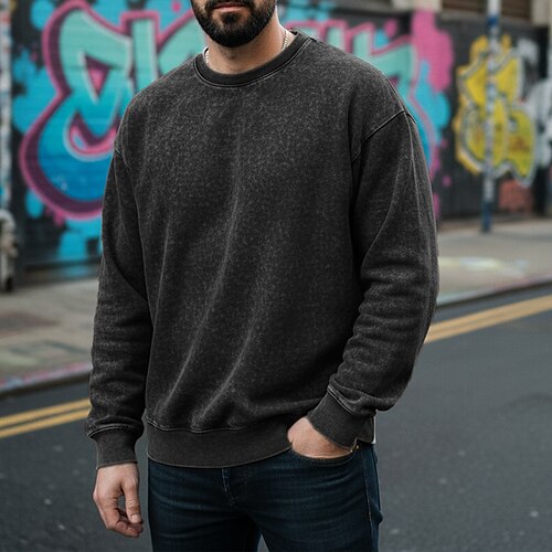 Per uomo Maglia Felpa con cappuccio invecchiata Aalbicocca Nero Rosa Verde militare Marrone Girocollo Semplice Quotidiano Ferie Uscire 100% Cotone Vintage Retrò Casual Autunno Inverno Abbigliamento