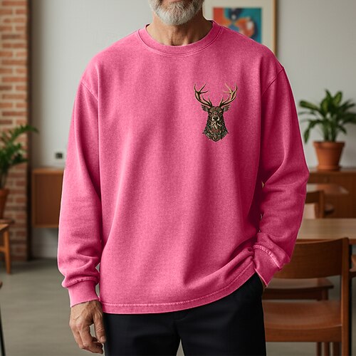 Per uomo Maglia Felpa con cappuccio invecchiata Aalbicocca Nero Rosa Verde militare Marrone Girocollo Renna Stampato Quotidiano Ferie Uscire 100% Cotone Vintage Retrò Casual Autunno Inverno