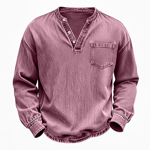 Per uomo Maglia Henley Camicia 100% cotone lavaggio acido Maglietta Manica Corta Retrò Vintage Casual Cardigan con Bottoni Tasca Lavato Henley Casuale Estate Primavera Autunno Marrone scuro Nero Rosa