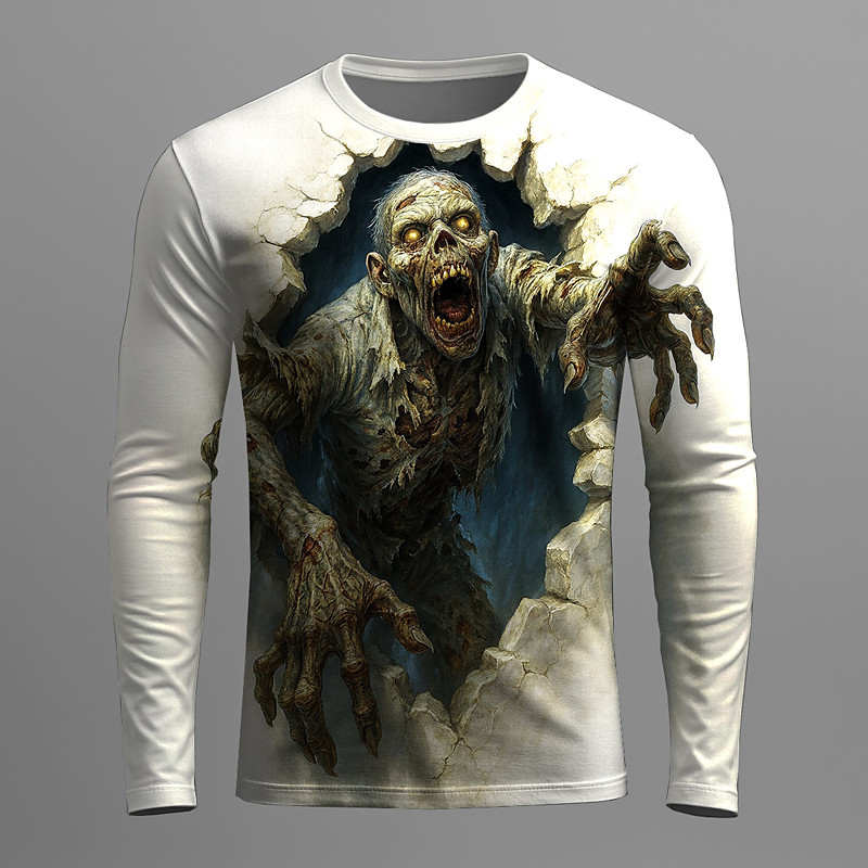 Men's Zombies 3D T Shirt Long Sleeve T shirt 3D Print Crew Neck Shirt Fashion Exaggerated Street Casual Daily White Summer Spring Fall Clothing Apparel S M L XL XXL XXXL