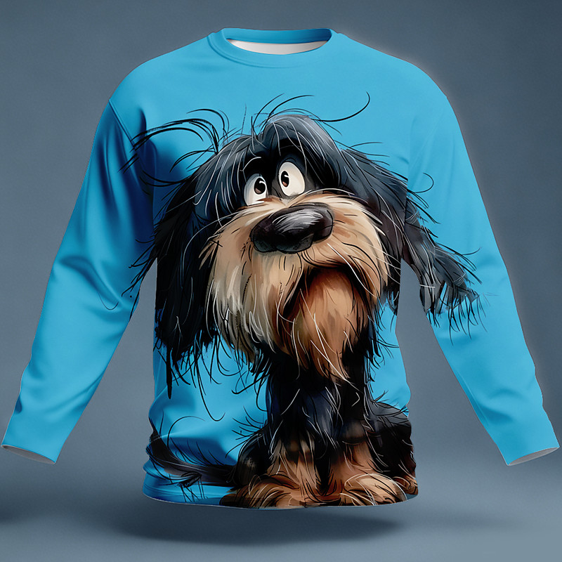 Men's Animal Dog Funny T Shirt Long Sleeve T shirt 3D Print Crew Neck Shirt Fashion Basic Street Casual Daily Blue Black White Summer Spring Clothing Apparel S M L XL XXL XXXL