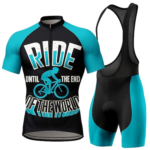 Herren Radtrikot mit Trägershorts Radtrikot-Set Kurzarm Mountainbike MTB Straßenradsport Blau Fahhrad UV-beständig 3D-Polster Reflektierende Streifen Atmungsaktiv Spandex Lycra Sport Bekleidung
