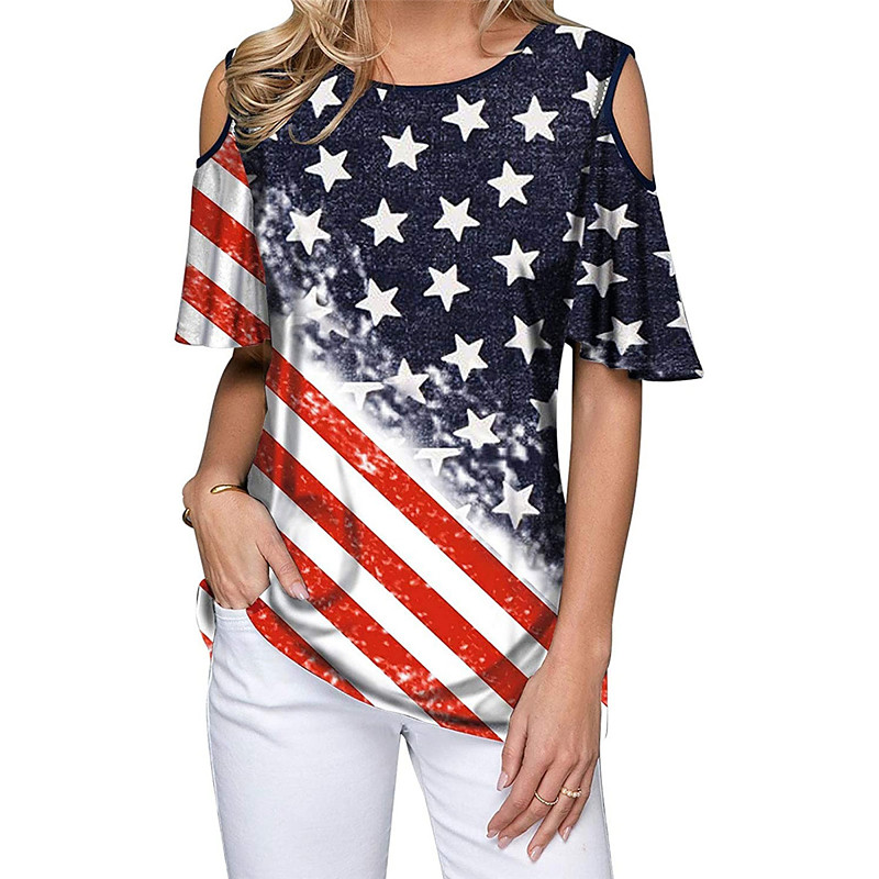 Women's Patriotic T Shirt American Flag Modern Casual Red White And Blue Short Sleeve Crew Neck Regular Tops Daily Weekend Print Wine Red Royal Blue Blue Summer Spring