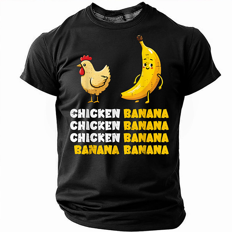 Funny Chicken and Banana DJ T-shirt, Cool Cartoon Animals, Music Lovers Apparel, Chicken Banana Graphic Shirt, Fun Gift for DJs, Clubbing, and Party Enthusiasts, Sizes S M L XL XXL XXXL
