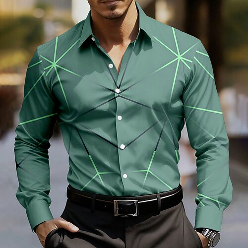 Per uomo Geometrico Linea Arte astratta Camicia Camicia elegante Camicia con Bottoni Manica Lunga Business Casual All'aperto Abbigliamento Quotidiano Primavera Autunno Collo ripiegato Stampa 3D
