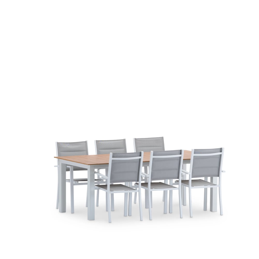 Set da tavolo in polywood 200x100 e 6 sedie in alluminio bianco