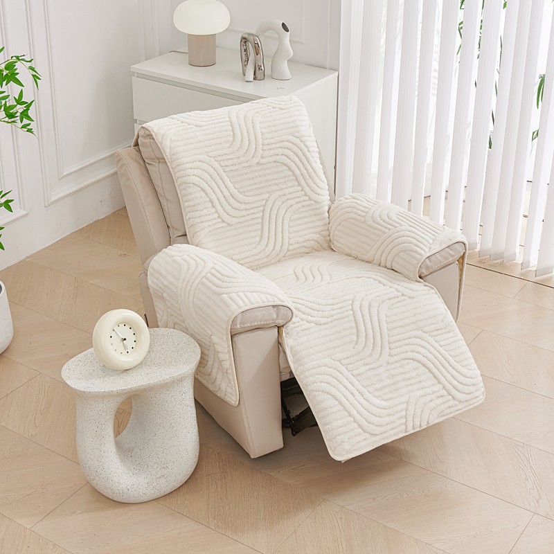 1Set Recliner Chair Covers - Solid Color Geometric Jacquard Polar Fleece Slipcovers Stretchable Furniture Protectors with Non-Slip Bottom, Machine Washable