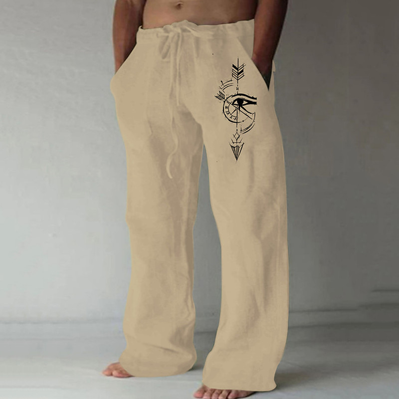 Men's Feathers Compass Pants Trousers Mid Waist Casual Outdoor Street Going out Spring Fall Black White Green