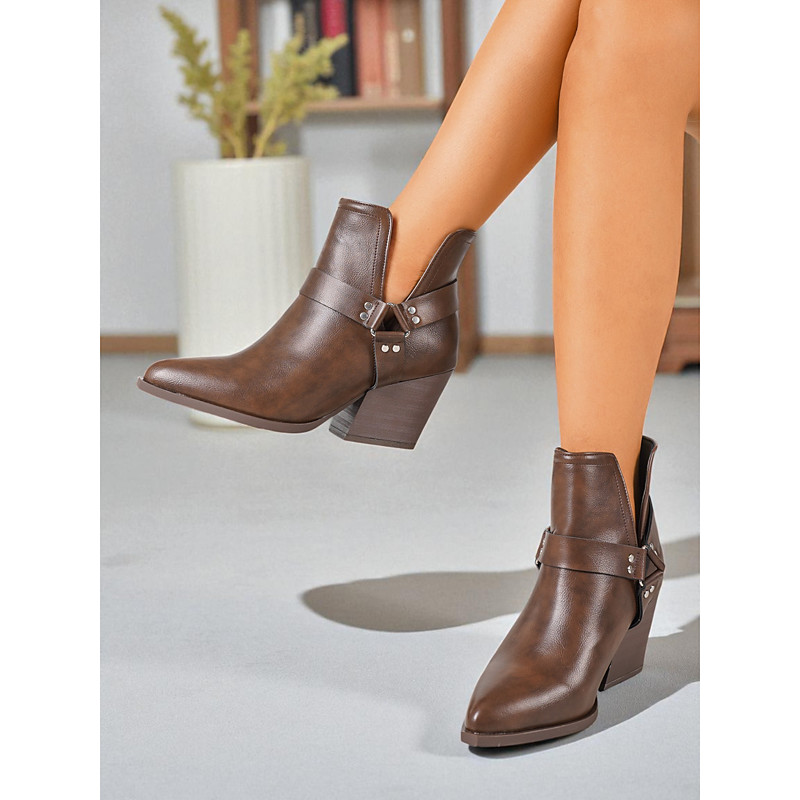 Women's Pointed Toe Ankle Boots – Faux Leather Mid-Heel Western Booties for Office Outfits, Urban Street Style and Daily Workwear