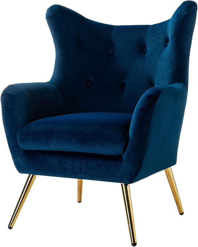 HULALA HOME Bequemer Sessel, Polster-Wingback-Sessel mit goldenen Metallbeinen, Komfortabler Samt-Lesesessel, Loungesessel für Wohnzimmer und Schlafzimmer, Blau