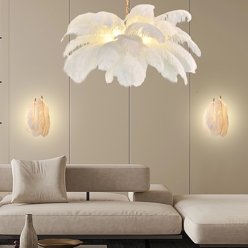 LED-Pendelleuchte, Kronleuchter, wunderschön, extra groß, 75/100 cm, weiße Straußenfedern, 2 Wandleuchten, 110–240 V