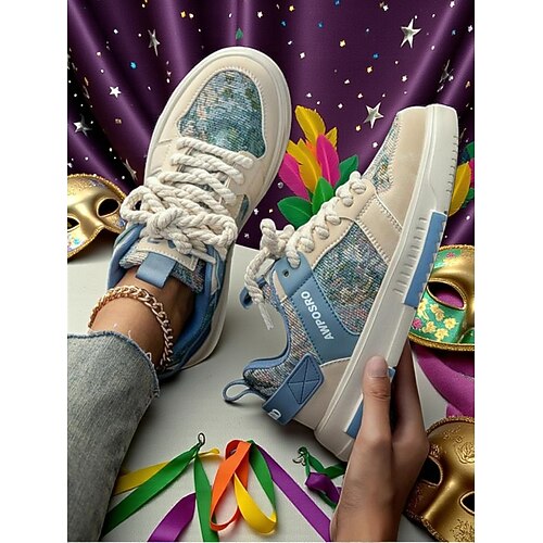 Sneakers con lacci da donna per il Mardi Gras con strass scarpe chunky per feste di Carnevale