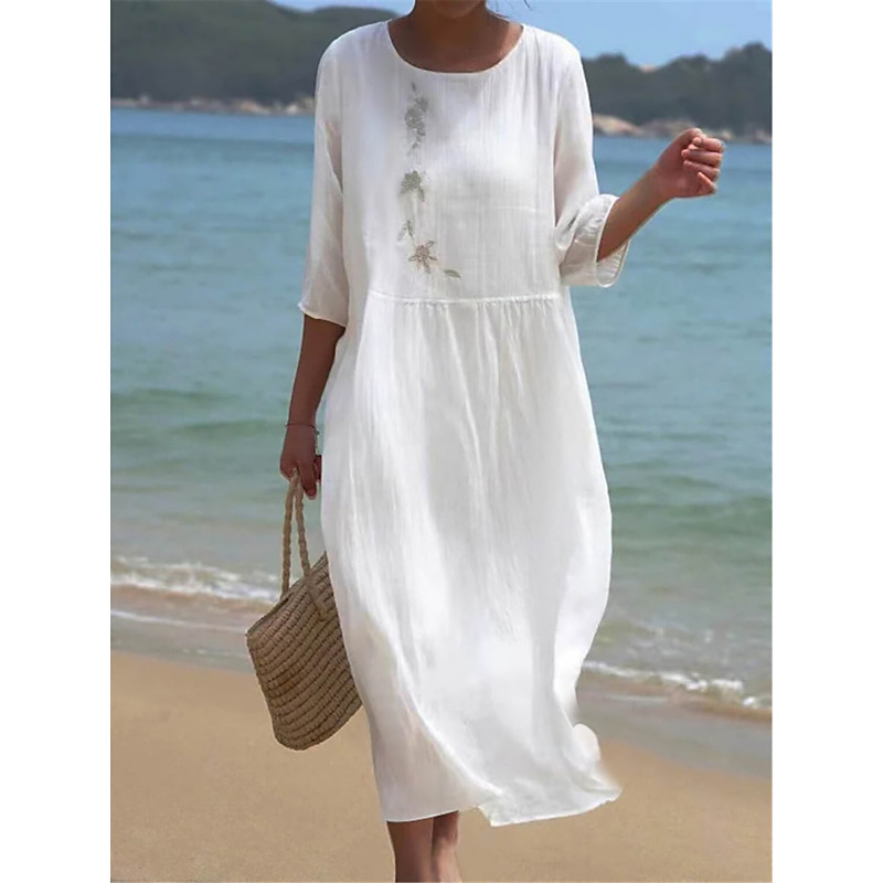 Women's Midi Dress A Line Dress Casual Daily Loose Fit Plain Long Sleeve V Neck Black White Yellow Red Summer Spring Fall