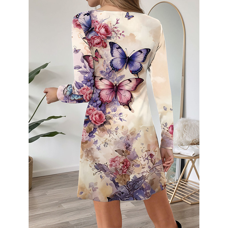 Women's Mini Dress Casual Dress Chiffon Dress Shift Dress Elegant Fashion Modern Daily Outdoor Weekend Regular Fit Floral Long Sleeve Crew Neck Pink Summer Spring Fall