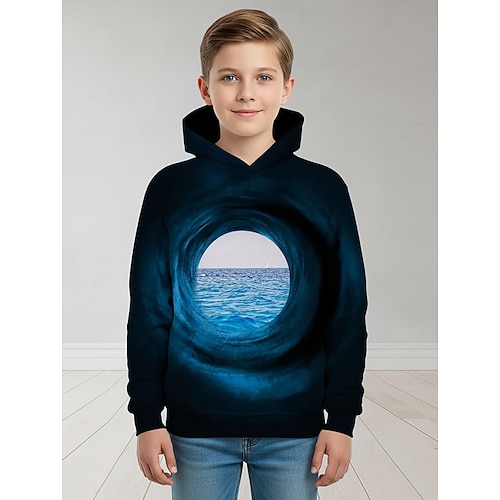 Jungen 3D Grafik Kapuzensweatshirt Pullover Langarm 3D-Druck Frühling Herbst Sport Mode Streetwear Kinder 4-12 Jahre Mit Kapuze Outdoor Lässig Täglich Normale Passform
