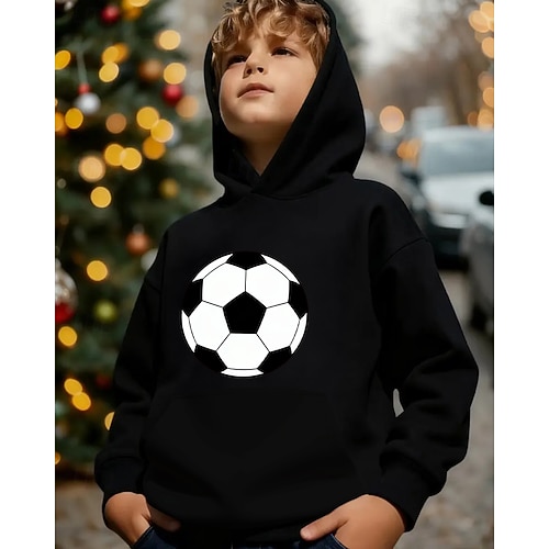 Unisex 3D Grafik Fußball Kapuzensweatshirt Pullover Langarm 3D-Druck Frühling Herbst Sport Mode Streetwear Kinder 4-12 Jahre Mit Kapuze Lässig Täglich Outdoor Normale Passform