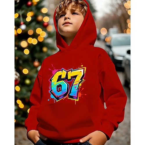 Unisex 3D Grafik Lustiger Slang 67 Kapuzensweatshirt Pullover Langarm 3D-Druck Frühling Herbst Sport Mode Streetwear Kinder 4-12 Jahre Mit Kapuze Lässig Täglich Outdoor Normale Passform