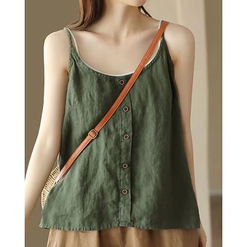 Per donna Blusa Canotta a canotta Semplice Moderno Senza Maniche Spallina Top Regolari Quotidiano Uscire Bottoni Nero Giallo Arancione Verde Cachi Estate