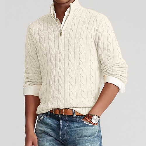 Per uomo Felpa Maglione A Coste Maglia Top Regolari Convertibile Lavorato a maglia Semplice Scialle Maglieria Contemporaneo Casuale Abbigliamento quotidiano Abbigliamento Autunno Inverno Nero Bianco