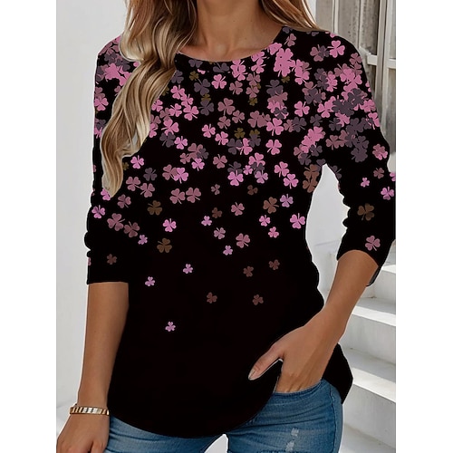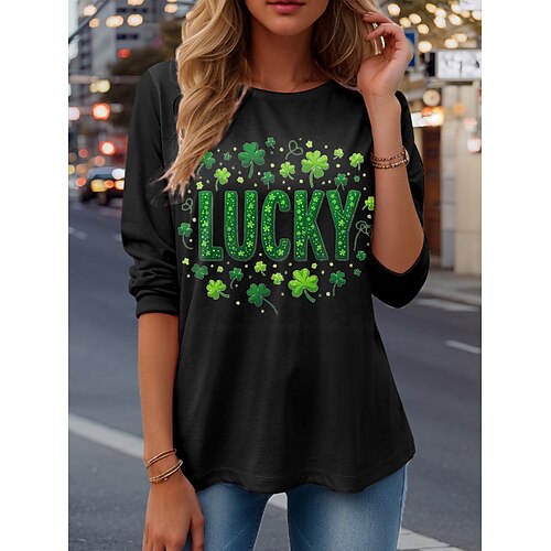 Festa di San Patrizio Per donna Maglietta Grafico Trifoglio Moda Classico Casual Manica Lunga Girocollo Top Regolari Quotidiano Weekend Stampato Nero Bianco Verde Primavera Inverno