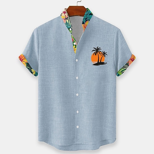 Per uomo camicia di lino Camicia da spiaggia Camicia hawaiana Albero di cocco Esterno Da mare Blu Marrone Verde Manica corta Colletto alla coreana Estate Primavera Abbigliamento Stampa