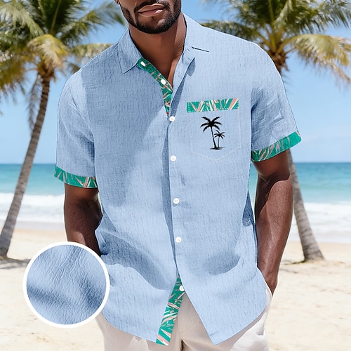 Per uomo Albero di Cocco Piante Tropicali Camicie hawaiane Camicia stropicciata Camicia di Seersucker Manica Corta Hawaiano Vacanza al Mare Estate Primavera Collo ripiegato Morbido Camicie con bottoni