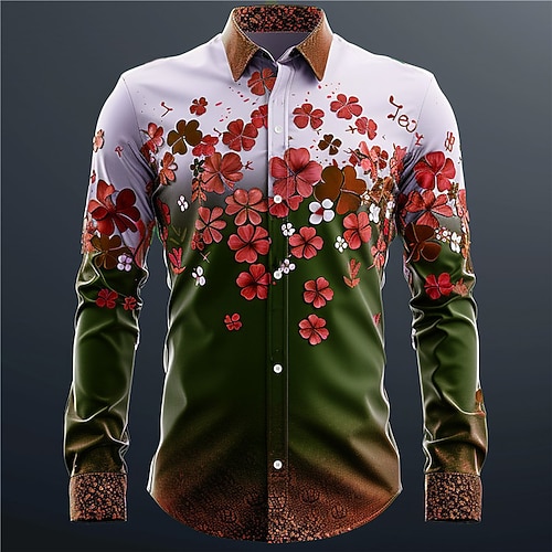 Vierblättriges Kleeblatt Modisch lässig Herren Bedruckte Hemden Festtage Urlaub Festival Frühling Sommer Umlegekragen Langarm Rote, Dunkelgrün, Purpur S, M, L 4-Wege-Stretchgewebe Hemd St. Patrick
