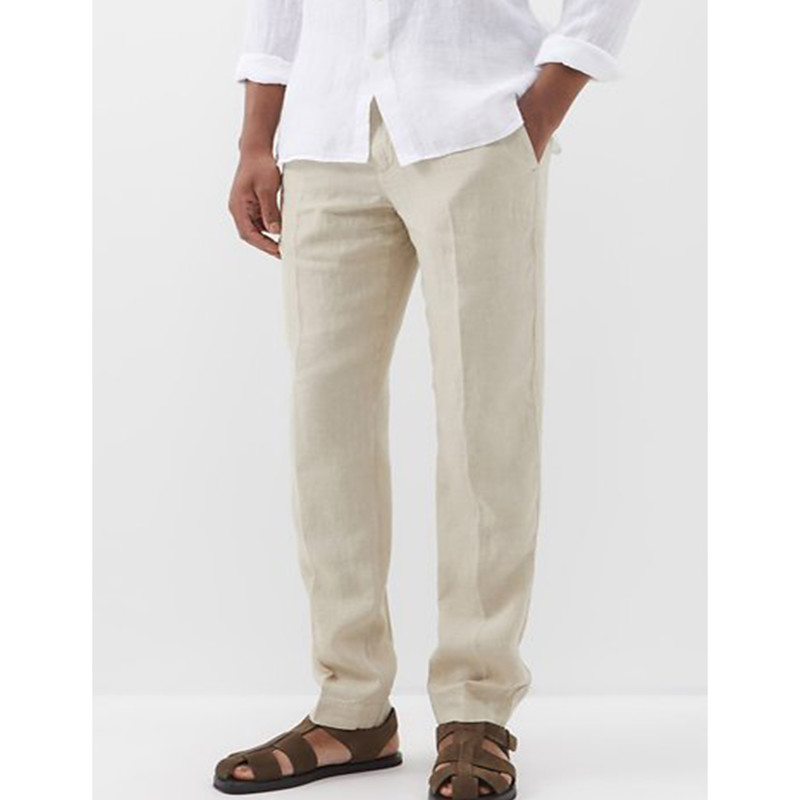 Men's Linen Pants Trousers Summer Pants Beach Pants Straight Leg Plain Comfort Outdoor Casual Daily Streetwear Stylish White Navy Blue