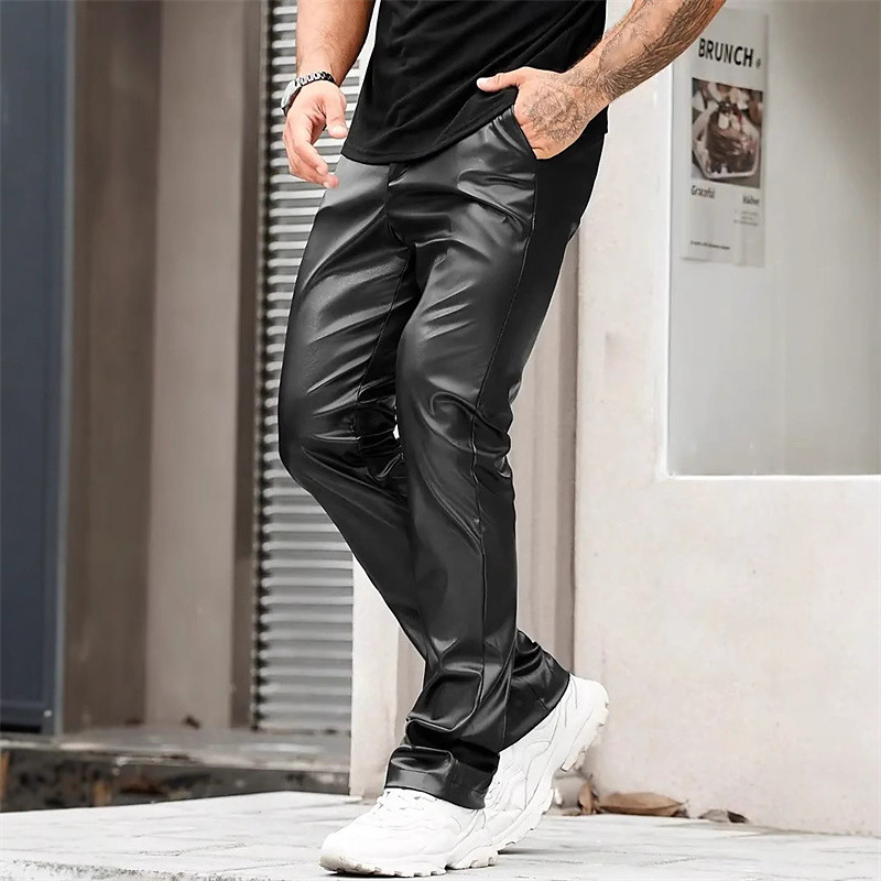 Men's Trousers Summer Pants Faux Leather Shorts Pocket Plain Comfort Breathable Vacation Daily Holiday Stylish Athleisure Black
