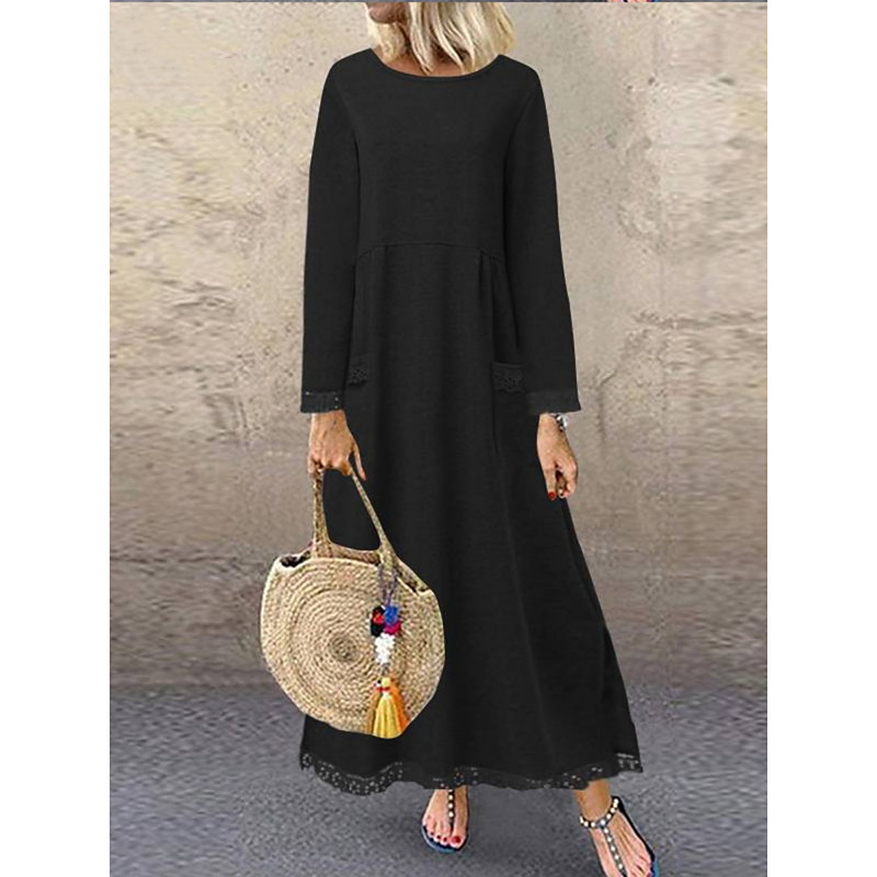 Women's Maxi Dress Shift Dress Casual Daily Loose Fit Plain Long Sleeve Crew Neck Black Red Navy Blue Purple Spring Fall