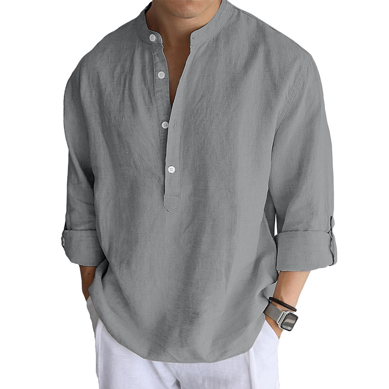 Men's Linen Shirt Popover Shirt Casual Shirt Beach Shirt Band Collar Shirt Plain Beach Vacation Black White Pink Orange Long Sleeve Mandarin Collar Summer Spring Clothing Apparel Plain