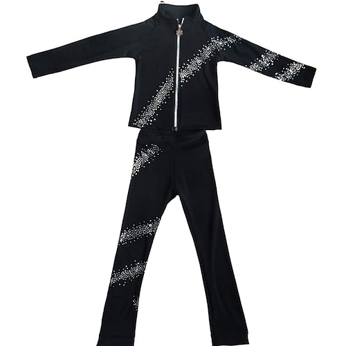 giacca da pattinaggio artistico con pantaloni, abbigliamento da pattinaggio sul ghiaccio da donna e da ragazza, nero, elastico, abbigliamento da pattinaggio per competizione, termico, caldo, con