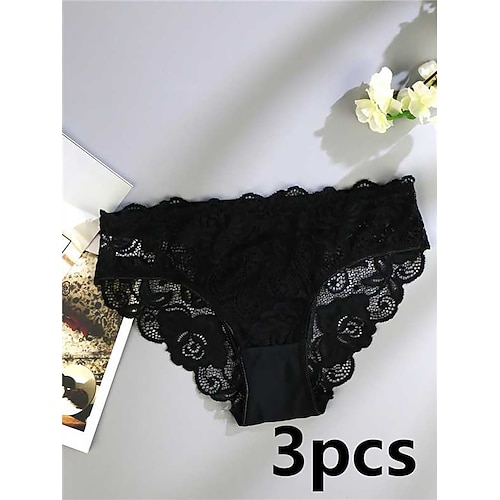 Per donna Mutandine Pizzo Elastico in vitaNightwearCotone Nylon Tinta unita Moda Carino Blu Nero Bianco Rosa Rosso Primavera Estate Autunno Inverno Inverno