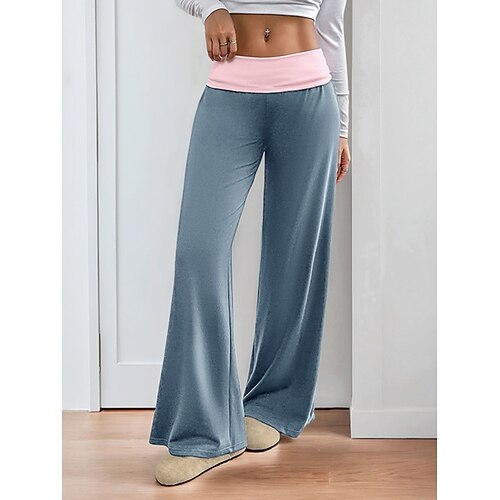 Per donna Gamba larga Chinos Vacanza Moda Streetwear Lunghezza intera Vita Bassa Semplice Patchwork Comodo Comodità Morbido Micro-elastico Quotidiano All'aperto Streetwear Blu Blu marina Nero Fuschia