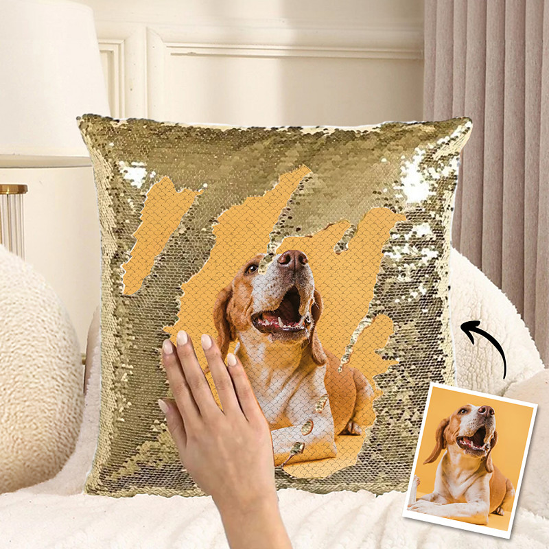 Custom Dog Photo Magic Sequin Pillow Personalized Reversible Throw Pillowcase with Your Pet Picture Gift for Dog Lovers 16x16 Inch