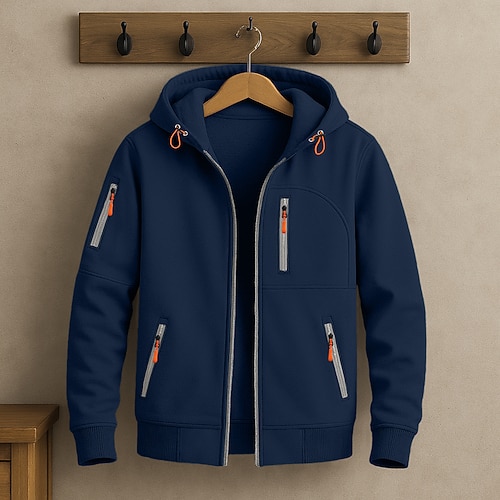 Per uomo Felpa con cappuccio Felpa con cappuccio e zip Giacca felpata Tattico blu navy Rosso bordeaux Nero Bianco Blu Reale Con Cappuccio Blocco di colori Cerniera Cool Inverno Abbigliamento Felpe