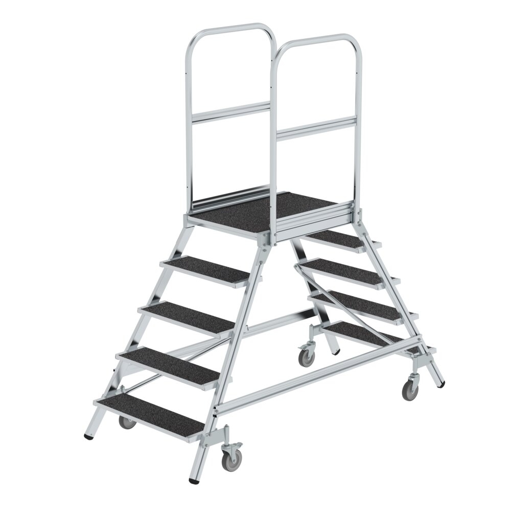 PROREGAL Podesttreppe beidseitig begehbar mit Federrolle | Korundbeschichtung R13 | 5 Stufen | Rutschsichere Leiterschuhe