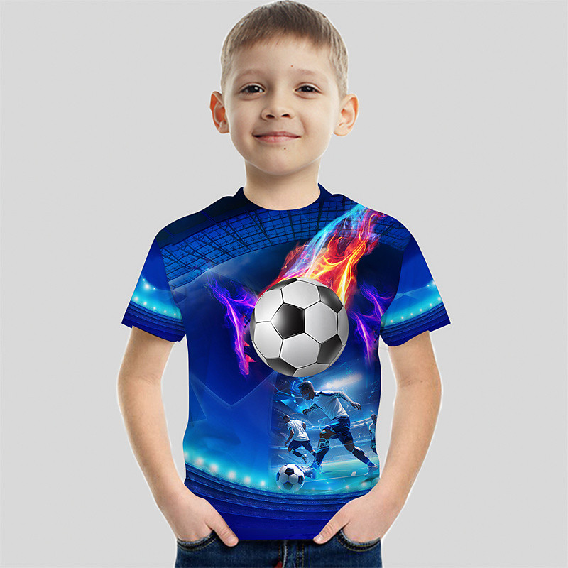 Boys 3D Football T shirt Tee Short Sleeve Summer Spring Fashion Basic Kids 4-12 Years Crew Neck Outdoor Casual Daily Regular Fit