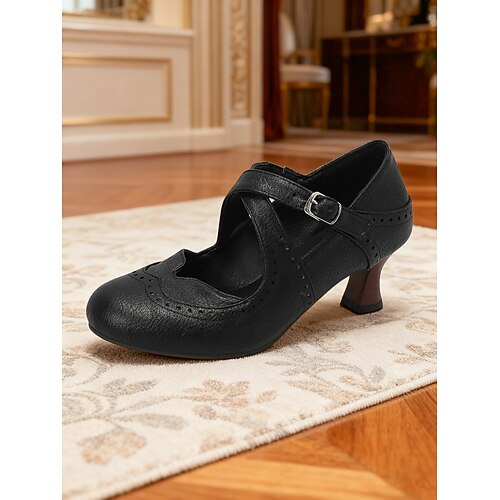 scarpe mary jane con fibbia e brogue in similpelle marrone vintage anni '50 da donna: eleganti décolleté per occasioni formali, ufficio e abbigliamento da giorno e da sera